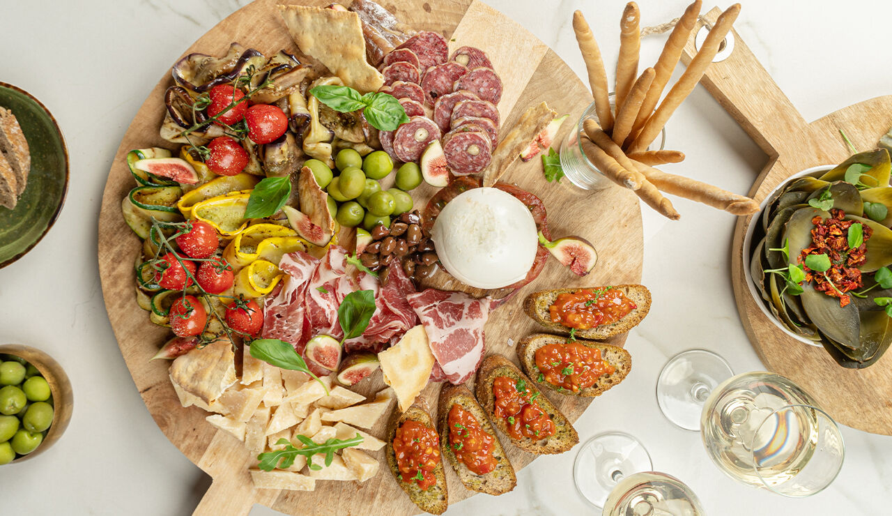 Anti Pasti Misti met gegrilde courgette, artisjok en pan con tomate
