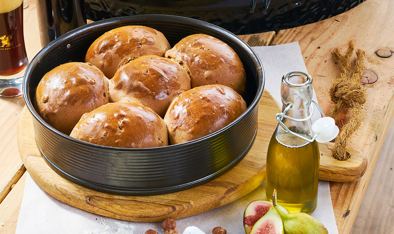 Bierbrood van de barbecue volkoren-speltbrood met vijgen, hazelnoten en bier