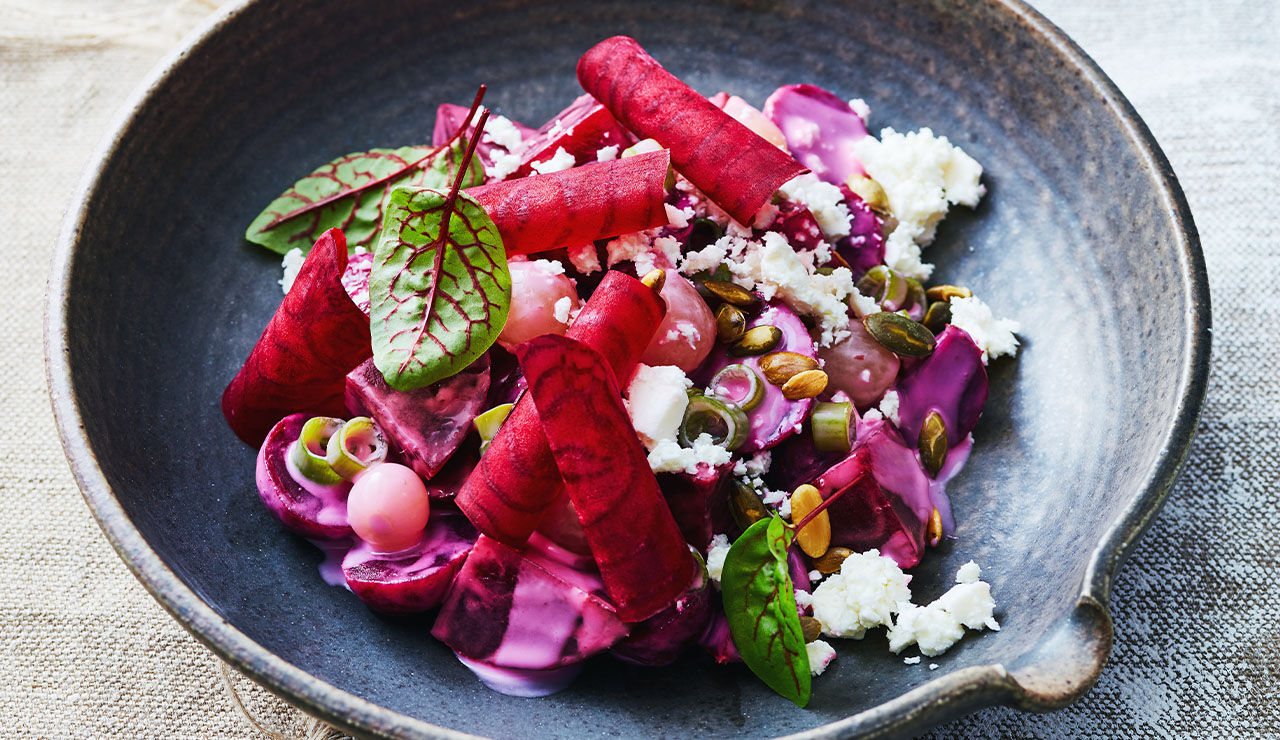 - Verdeel de bietensalade over salade bowls.