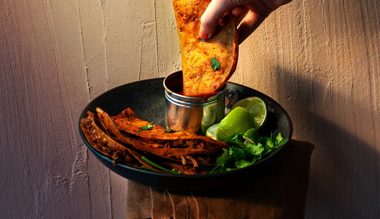 - Voeg als laatste je keuze van 500 gr vulling toe. Je kan kiezen tussen de pulled chicken tinga of de pulled pork carnitas.