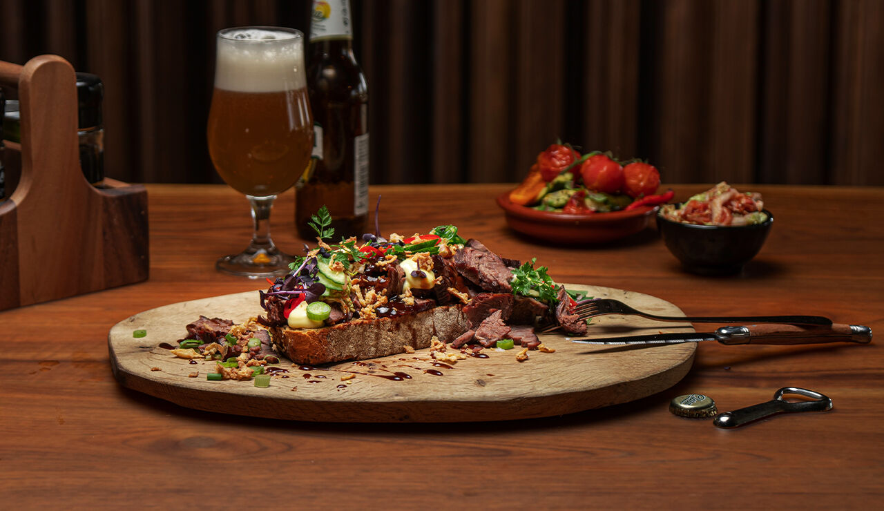 - Beleg het broodje met de kimchi en daarop de gesneden brisket.