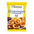 57% ui, bloem (TARWE), plantaardige olie (zonnebloem, raapzaad, in wisselendeverhoudingen), zetmeel (tapioca, TARWE, mais), rijsmiddelen (E500, E450), verdikkingsmiddelen(E407, E412), zout, geleermiddel (E401), gist, dextrose, suikerE = Door de EU goedgekeurde hulpstof.