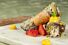 - Leg de cannoli op het bord en spuit er speels de cremeux van mango omheen.