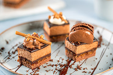 - Leg de 3 stukken dessert in een driehoek op het bord.