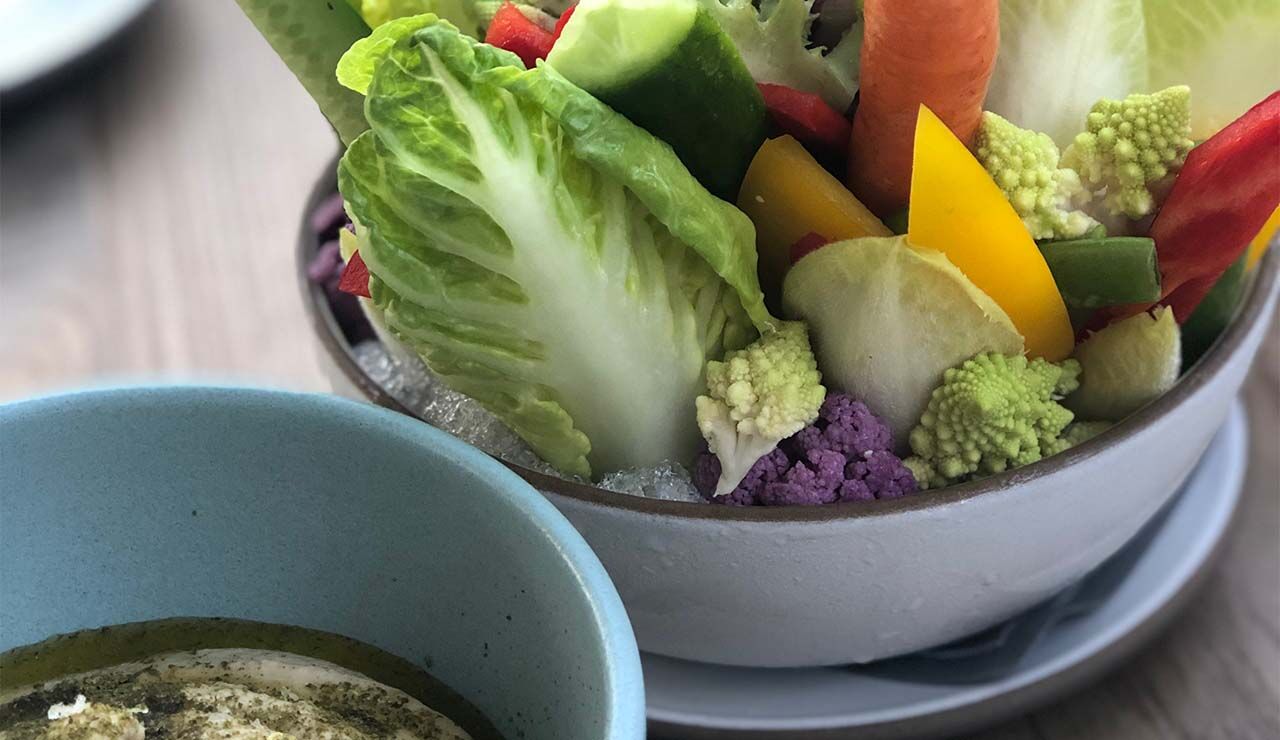 Crudites met dip met blauwe kaas en Griekse yoghurt