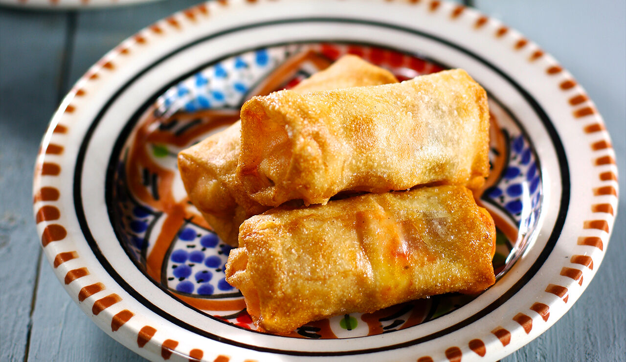 - Rol vervolgens de vellen op en smeer de uiteinden in met een beetje ei.
