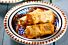 - Snijd de filodeegvellen in vieren. Leg de hoopjes feta hierin en vouw de vellen dicht.