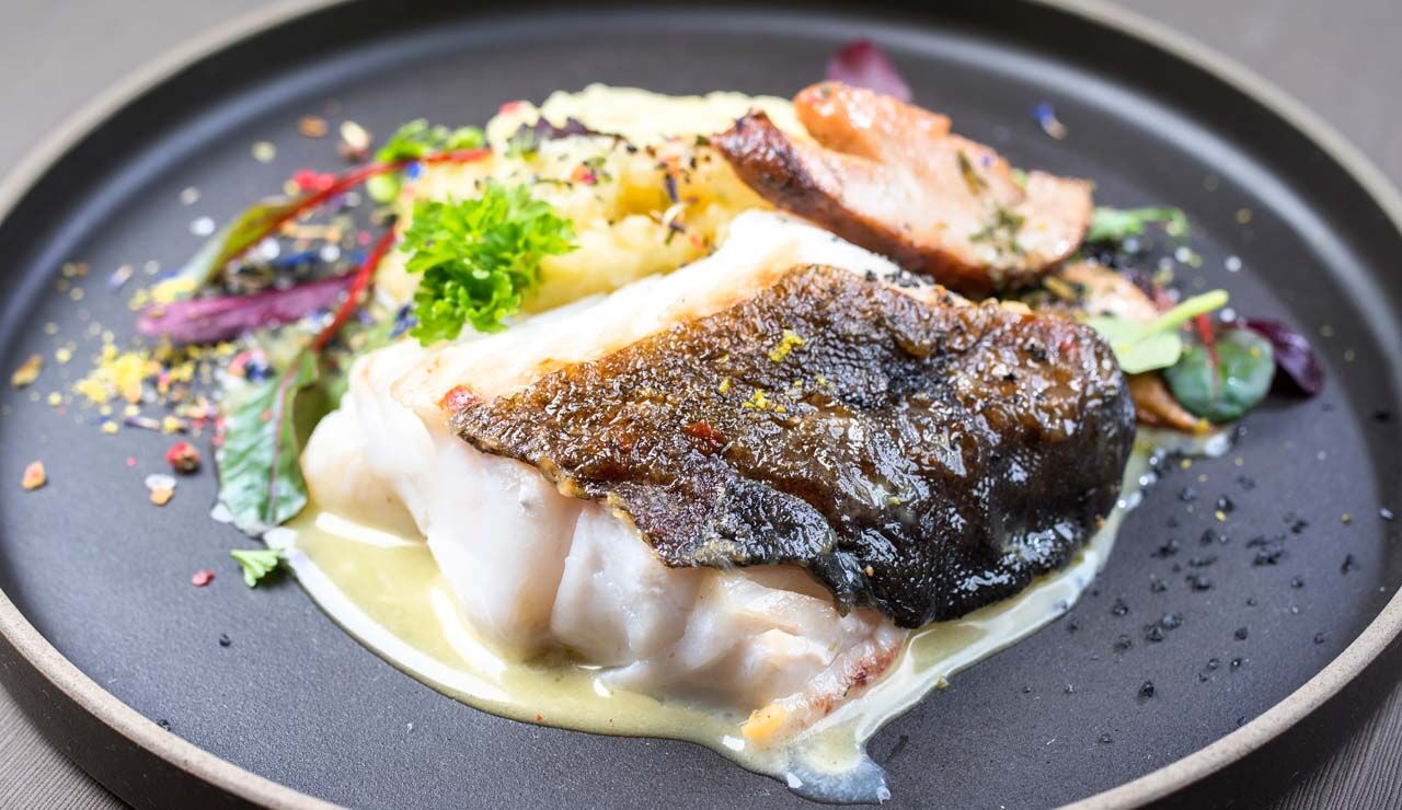 Gebakken skrei met aardappel mousseline en shii-take