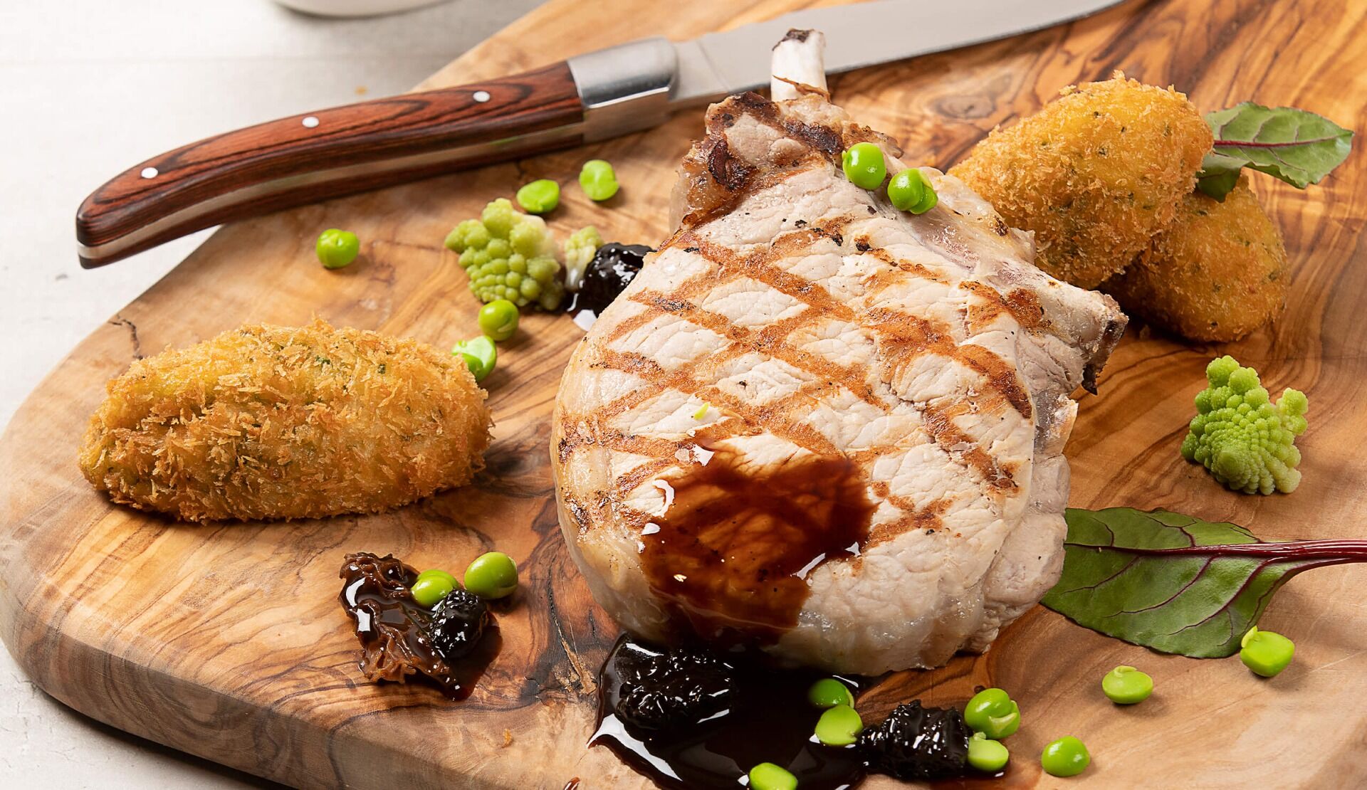 Gegrilde varkensrack met gefrituurde polenta en morillesaus