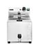 Friteuse met het hoogste vermogen op de markt in zijn capaciteitsbereik HENDI GOLIATH heeft een vermogen van 10.200 W.Bereidt tot 1 kg friet in ongeveer 3 minuten - dankzij het extreem efficiente, extra sterke verwarmingselement.Zeer snelle opwarming van olie: ongeveer 5 minuten (afhankelijk van de omgevingsomstandigheden).De behuizing, tank en deksel zijn gemaakt van roestvast staal dat bestand is tegen hoge temperaturen.Ruime tank van 10 liter met een V-vorm bodem nog efficientere ""koude"" zone die de prestaties van de friteuse verbetert.De set bevat een zeer stevige frituurmand met afmetingen: 290x200x(H)142 mm, gemaakt van vernikkeld staaldraad. De mand is uitgerust met een lange, koel blijvend, handvat 162 mm.Steun voor het veilig plaatsen van de frituurmand in de tank.Hoogwaardige thermostaat van de Duitse fabrikant EGO, met een controlelampje dat de werking van het verwarmingselement aangeeft.Verwijderbare regeleenheid en verwarmingselement, met ingebouwde bescherming die het apparaat uitschakelt wanneer het apparaat wordt opgetild.Temperatuurbereik: 50°C tot 190°C.Min. en max. olieniveau-indicatoren in de tank.Kraan voor eenvoudig legen van het oliereservoir.Bescherming tegen oververhitting door middel van een resetbare thermische zekering.OPMERKING: Installatie door een elektricien is vereist het apparaat wordt zonder stekker geleverd.