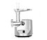 Ideaal voor kleine hoeveelheden en worsten maken, niet voor professioneel gebruik. Aluminium behuizing. Gietijzeren invoerbak met vleeshouder en stofdeksel. Stamper van plastic. Aluminium wormschroef en roestvast stalen mes. Inclusief 2 platen ظ65,8 mm: 4 mm en 7 mm perforaties. 3 vultrechters voor worsten: ظ12, 15 en 20 mm. Filet. Americain accessoire. Aan/uit/achteruit schakelaar. Niet voor continu gebruik. Gewicht 5,2 kg.