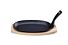 Schaal en grijperhandgreep gemaakt van gietijzer.Onderlegger gemaakt van berkenhout.Schaal geschikt voor de oven.De set is niet vaatwasmachinebestendig.