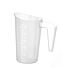 Schaalverdeling in relief in de zijkant van de maatbeker. Door de vorm van het handvat kunnen meerdere maatbekers worden gestapeld.
