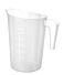 Schaalverdeling in relief in de zijkant van de maatbeker. Door de vorm van het handvat kunnen meerdere maatbekers worden gestapeld.