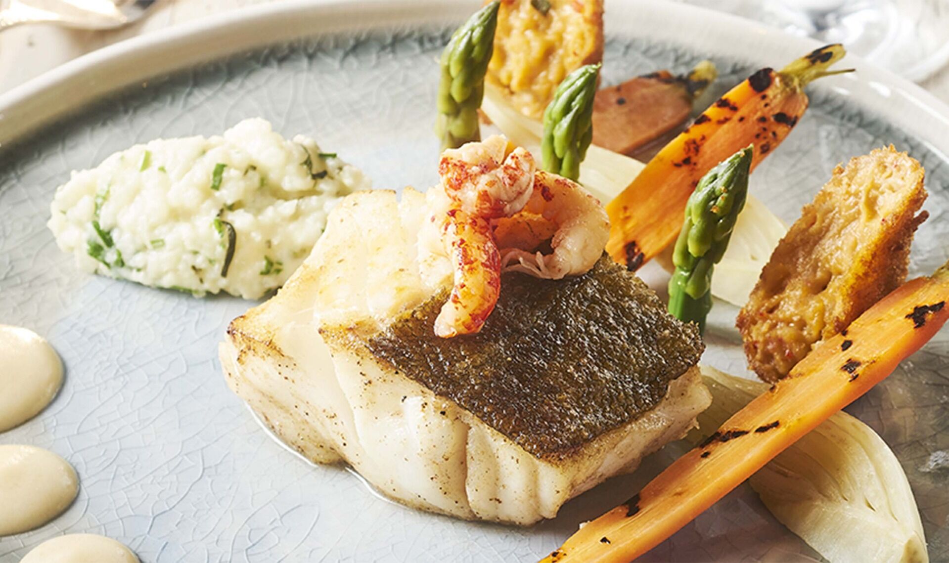 Kabeljauwfilet met risotto rivierkreeft en Hollandaise saus