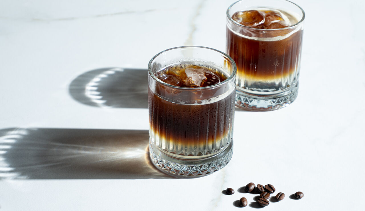 - Voeg de afgekoelde espresso toe aan de cocktailshaker en vul met ijs. Sluit de shaker goed en schud krachtig om een lichte schuimlaag te creëren.