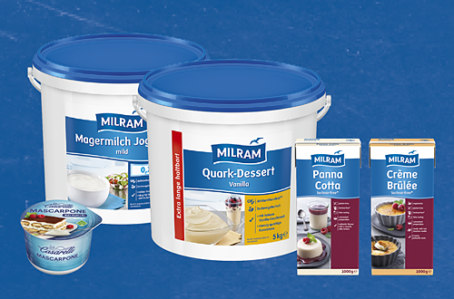 Milram bied een breed aanbod aan witte zuivelproducten voor de professionele keuken. Het assortiment omvat onder andere: