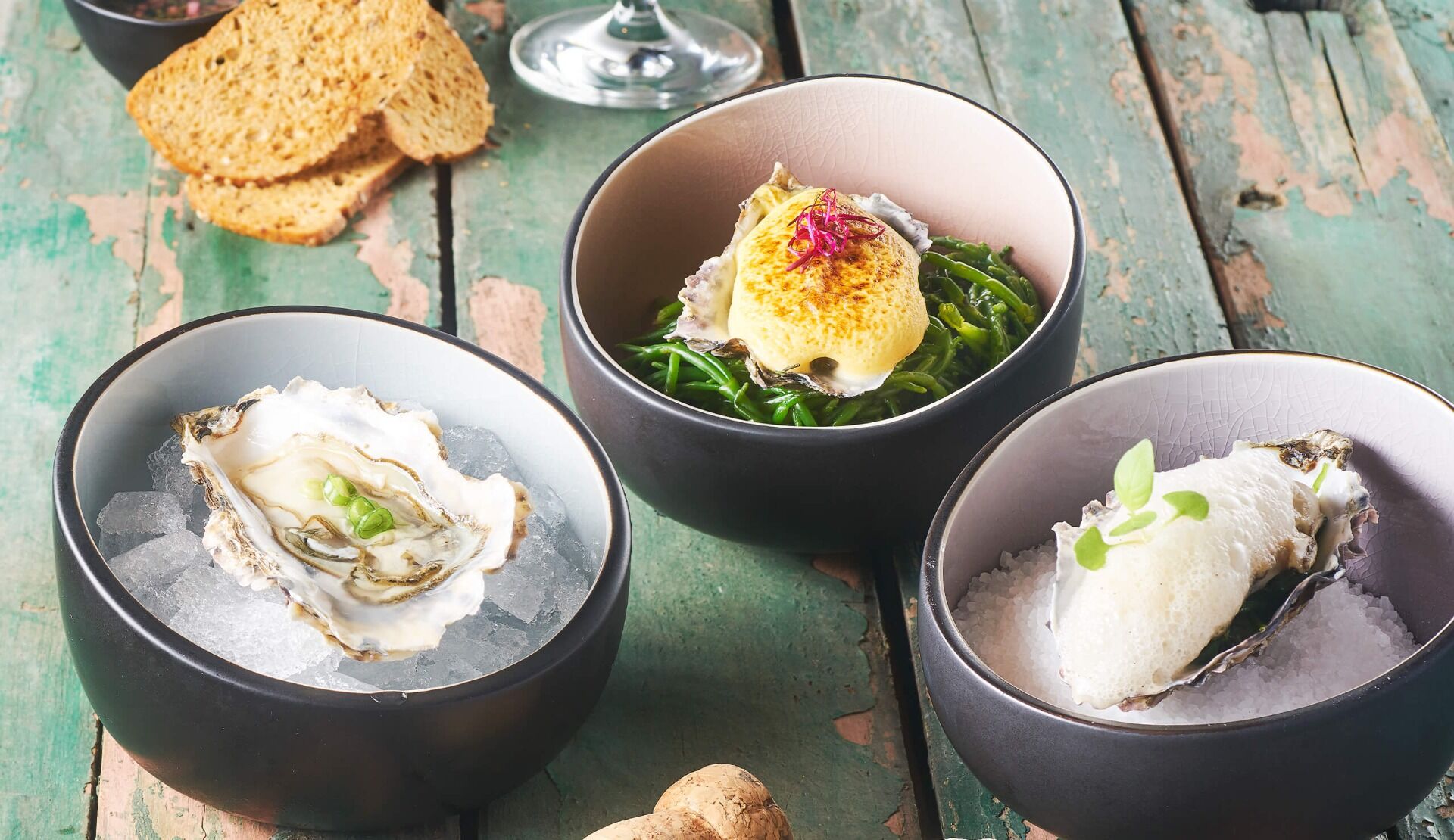 Oesters op drie manieren met vinaigrette, sabayon en grapefruitschuim