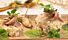 - Maak op elk bord twee torentjes van aardappelsalade.