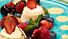 Leg al het fruit rond de parfait en steek hier de topjes munt tussen.
