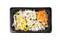 Mix van diverse gesneden groenten, ananas en mandarijn.