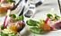 - Leg naast elke rouleau een plukje veldsla en frisee en schep hier wat chutney op.