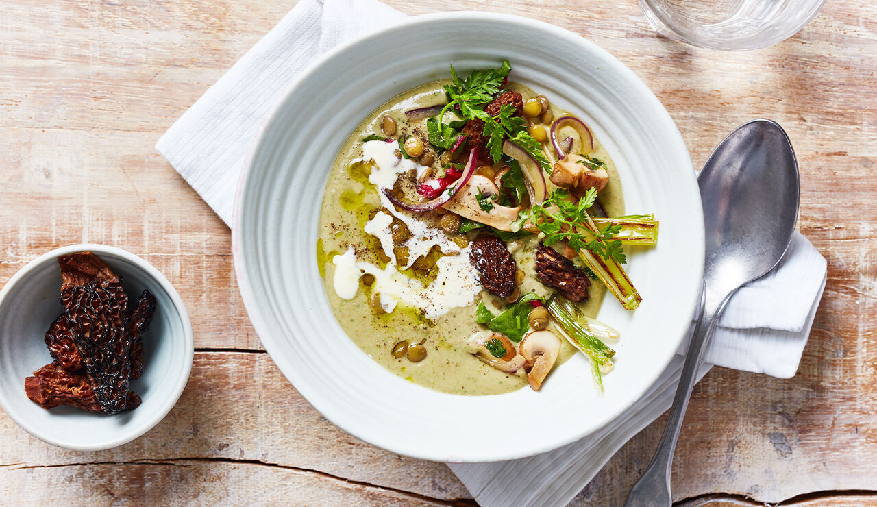 - Pureer het geheel tot een gladde massa en voeg de Flora 100% plantaardige kookroom 15% vet toe.