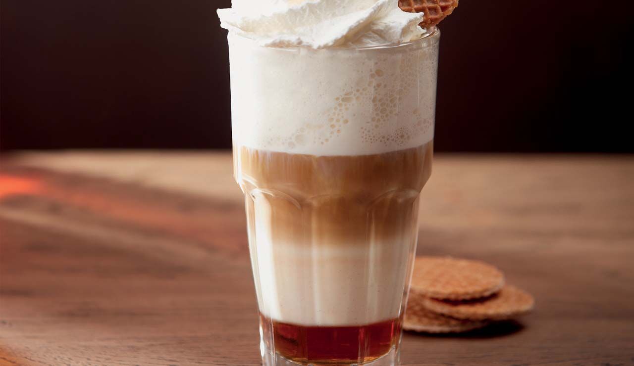 Salty Dutch een latte macchiato met salted caramel en mini stroopwafel