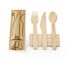 Het kraft zakje bevat een houten mes, vork en lepel plus een servet.