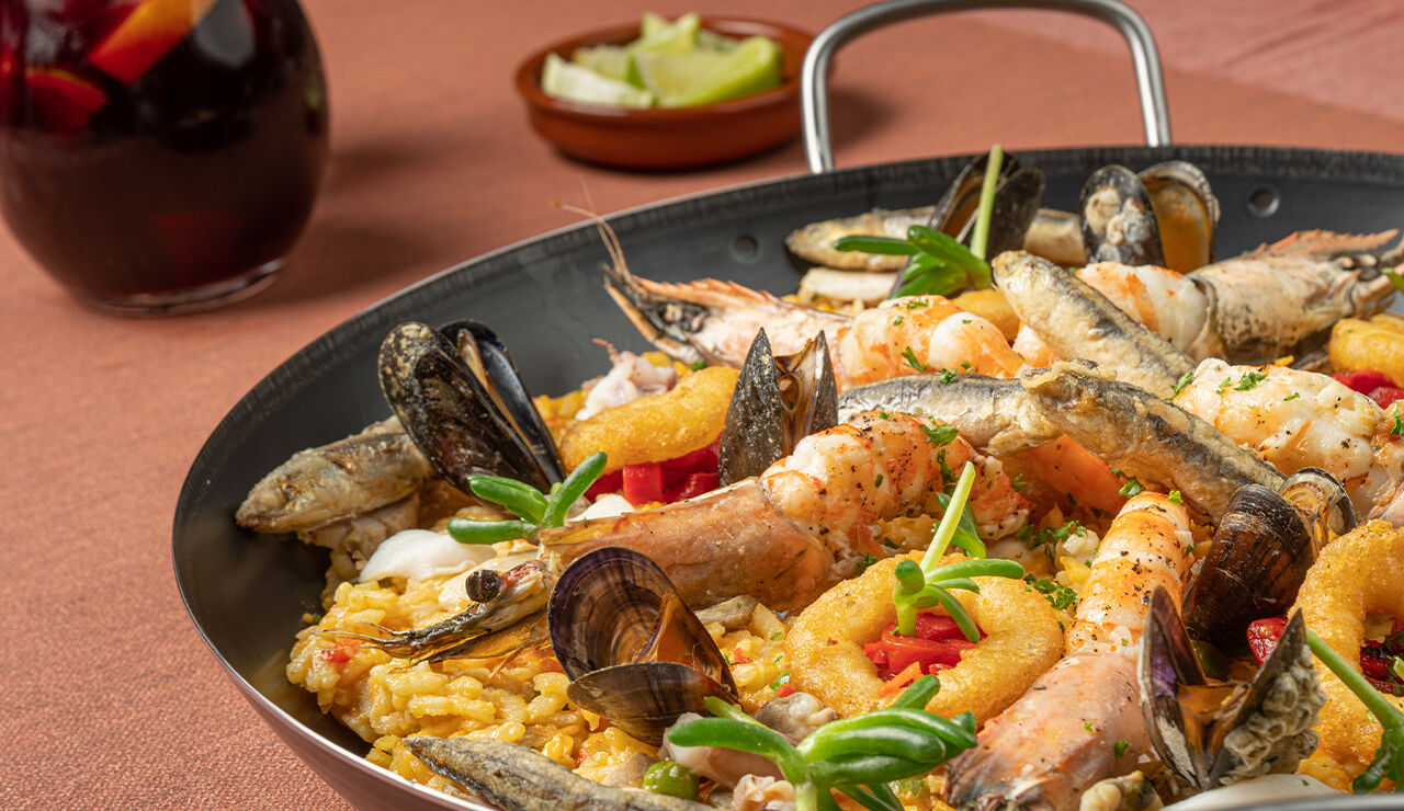 Spaanse paella met chorizo, ansjovis en fruit de mer