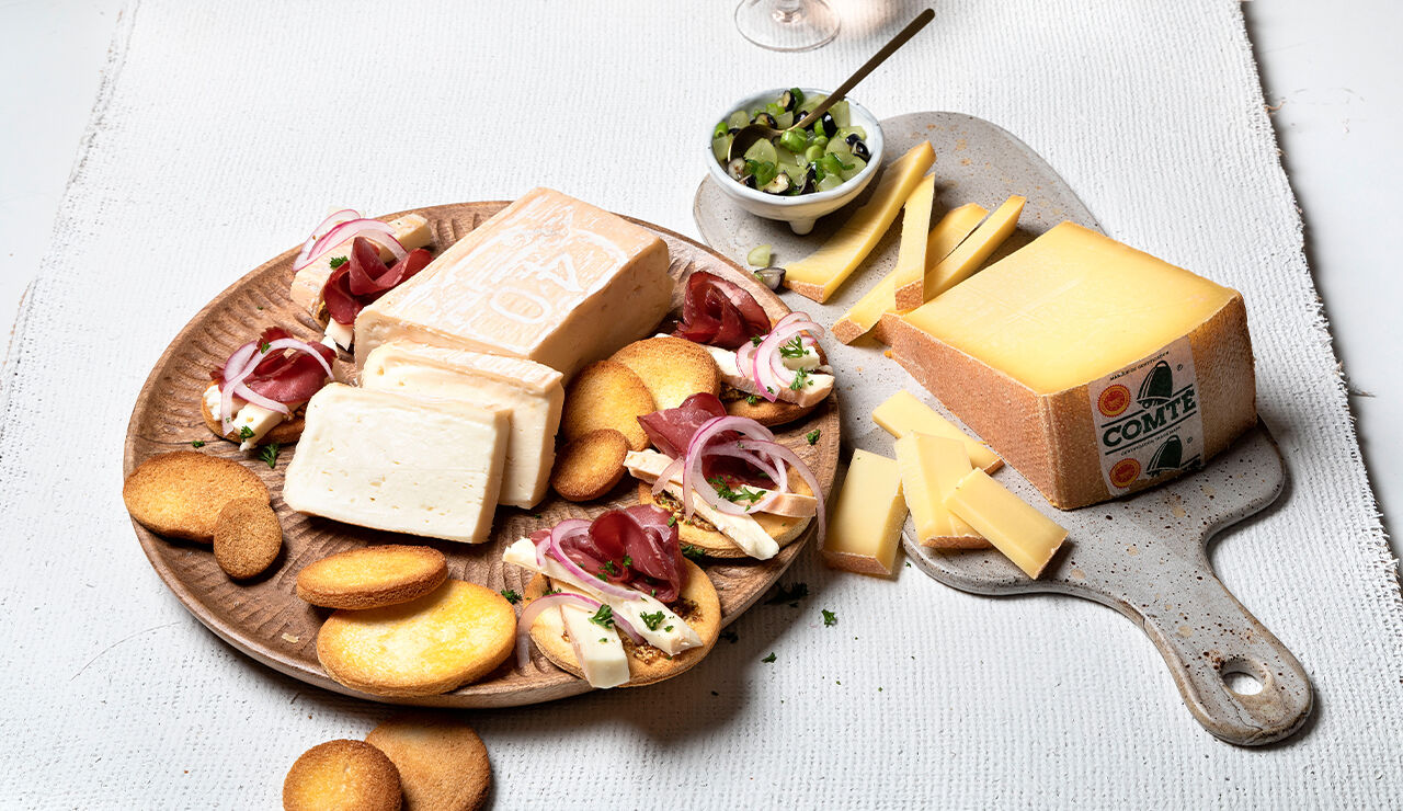 Taleggio met gedroogde runderham, zoetzure ui en grove mosterd