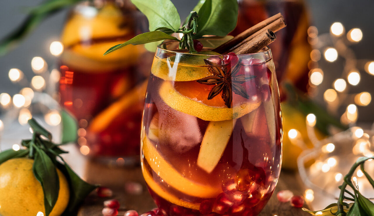 Winter Sangria met rode wijn en cranberry, granaatappel en Cointreau