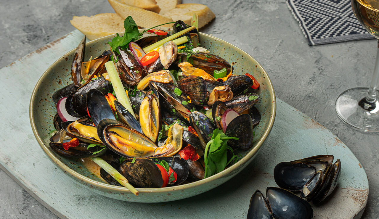 - Serveer de mosselen in een mooie schaal of een diep bord.