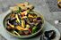 - Snijd de bosuitjes en de rode peper schuin in lange, dunne ringen. Meng deze voorzichtig door de mosselen.